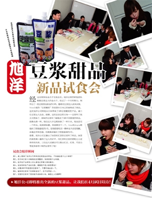 由日本拖拉克(toraku)公司(不二集團(tuán)公司)和上海旭洋綠色食品有限公司共同研制的以豆?jié){為原材料的新口味甜點(diǎn),最近組織了新品試吃活動(dòng)。由于此次甜點(diǎn)的創(chuàng)意完全源自于旭洋重視的消費(fèi)者們,所以我們特別重視這次試吃活動(dòng)上大家的給予的意見。試吃結(jié)束后,大家對新產(chǎn)品不約而同的豎起了大拇指,稱贊新產(chǎn)品的完成度非常的高,完全可以在市場上出售了。到預(yù)計(jì)新產(chǎn)品上市的2010年初夏,還有一些時(shí)間,我們會(huì)積極聽取大家的建議和意見,力爭把更優(yōu)質(zhì)的豆?jié){布丁呈現(xiàn)給大家!!